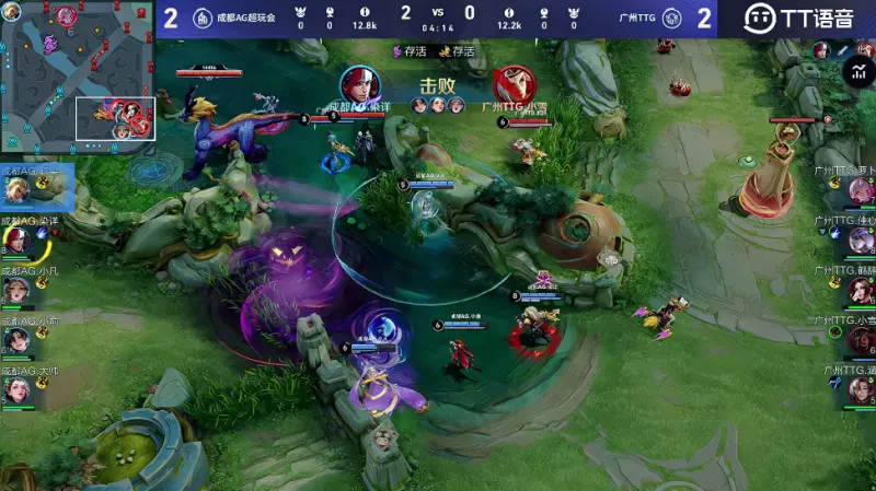 不知火舞率先发难闪现开团,后续爆发团战AG打出1换2